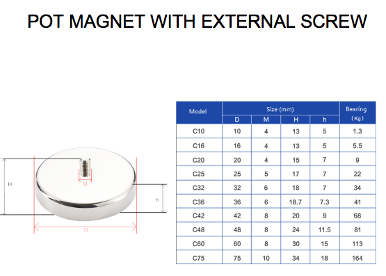 Powerful external thread pot magnet
