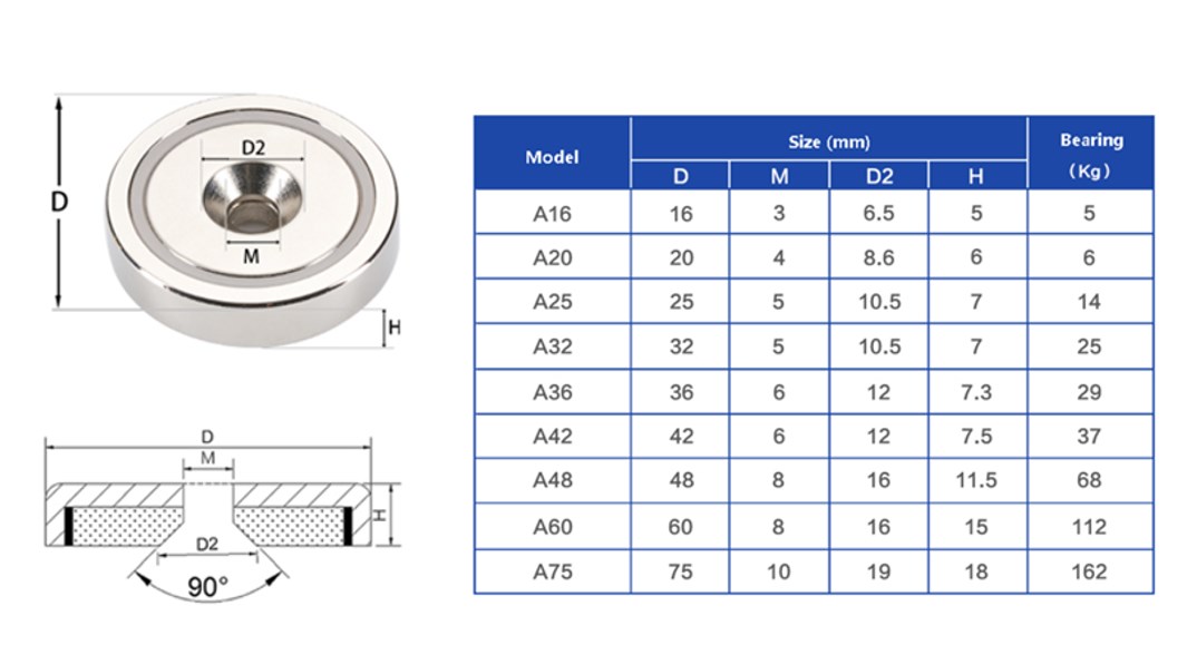 产品描述:D16,D20,D25,D32,D36,D42,D48,D60,D75mm厂家现货,钕铁硼强力吸盘,圆形沉孔锅磁钕铁硼强力沉头孔钢壳强力吸盘锅磁